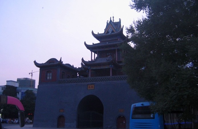 玉皇閣坐落在銀川興慶區(qū)解放東街和玉皇閣南、北街的交會(huì)處。此閣始建年代無從查考,從明代《弘治寧夏新志》府城圖上觀察,現(xiàn)玉皇閣的位置居明代府城鼓樓所在地。清乾隆三年( 1739年)毀于地震,重修后,稱為“玉皇閣”。清乾隆《銀川小志》載:“極崇煥軒敞,上供真武帝?!贝撕笏旆Q其為玉皇閣。