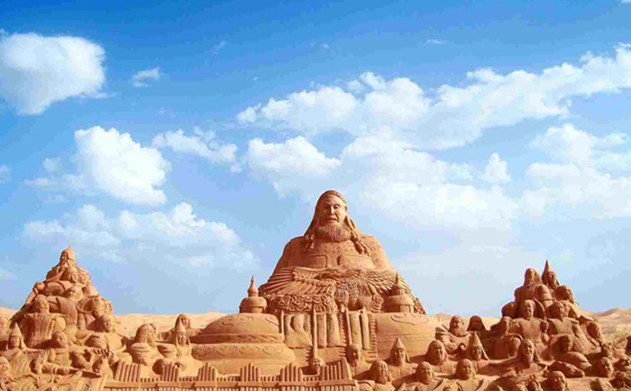 2002年張祥父子開發(fā)金沙灣時在灣內(nèi)發(fā)現(xiàn)了成吉思汗時代的10余種30多件文物,現(xiàn)在烏海文物博物館珍藏。為了紀念這位流傳千古的蒙古英雄,便建起了這座雕塑,這是蒙古民族的驕傲,這是中華民族的驕傲。