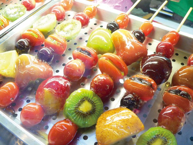 以平價且真材實(shí)料的日式小吃打動當(dāng)?shù)厝说男模?ldquo;起士洋芋”以進(jìn)口的美國馬鈴薯搭配豐富的配料和濃濃的起士,熱騰騰的美味要在逢甲夜市才吃得到;“阿伯特制冰淇淋”擁有許多低脂、低糖、低熱量口味的香草冰淇淋、巧克力綜合冰淇淋、巧克力冰淇淋、芒果冰淇淋、草芒綜合冰淇淋、草莓冰淇淋,十分香濃好吃;“現(xiàn)壓金桔檸檬”以檸檬、愛玉、山粉圓、仙草四合一的口味,擄獲民眾的心,在夏日來上一杯更是享受;“可麗餅”香脆的外皮、豐富的配料、多樣的口味,成為逢甲夜市的招牌美味。