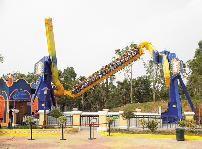 動(dòng)感地帶、彩虹灣、歷險(xiǎn)天地等主題區(qū),匯聚了當(dāng)今世界最大型、最刺激,科技含量最高的垂直過山車、十環(huán)過山車、摩托過山車、U型滑板、超級(jí)大擺錘、超級(jí)水戰(zhàn)六大頂尖游樂設(shè)施和四維影院、國際特級(jí)劇場兩大世界頂尖的精彩表演。