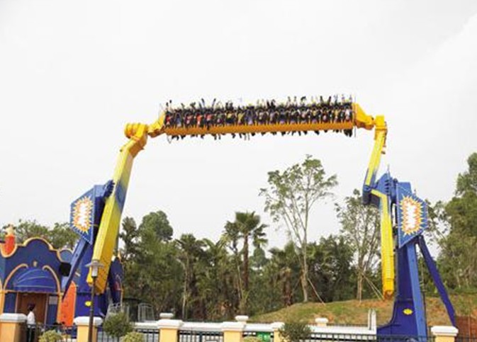 德國 HUSS公司原廠進(jìn)口,版權(quán)所有山東聊城聊之旅國際旅行社有限公司,轉(zhuǎn)載必究!號(hào)稱“全球最大大擺錘”,塔高26米,最大擺幅240度,擺高42米,最高110公里/小時(shí),在天旋地轉(zhuǎn)之間,讓你目炫神迷,驚心動(dòng)魄!