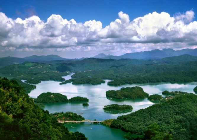 流溪河國家森林公園是經(jīng)林業(yè)部批準(zhǔn)建立的首批國家十大森林公園之一,總面積8831公頃,其中流溪湖于一九五八年建成,面積1466公頃,蓄水量3.6億立方米,水深約70米,在碧波萬傾的湖面上,分布著大小二十二個島嶼,如白玉翡翠。在公園的東南部,聳立著五指山、牛角山、雞枕山等海拔千米以上的山峰六座。其中雞枕山海拔1146.7米,是公園內(nèi)第一高峰。登高望遠,一派“遠山時明滅”、高峽出平湖“的壯觀景象奔來眼底,使人頓覺置身仙幻奇景之中。