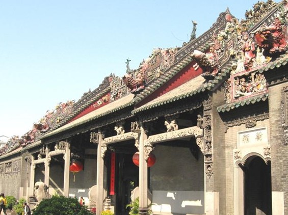 陳家祠堂坐落于廣東省廣州市中山七路。陳家祠堂又稱“陳氏書院”,始建于清光緒十四年(1888年),光緒二十年(1894年)落成,它是由清末廣東省七十二縣的陳姓聯(lián)合建造的,是廣東省著名的宗祠建筑。陳家祠堂的建筑結(jié)構(gòu)可分為三軸、三進(jìn),建筑面積達(dá)8000平方米。祠堂的每進(jìn)之間既有庭院相隔,又利用廊、廡巧妙地聯(lián)接起來,共有九座廳堂和六個(gè)院落,祠堂的整體布局上下對稱,殿堂樓閣,虛實(shí)相間,氣勢雄偉。“聚賢堂”是陳家祠堂中軸線的主殿堂,也是陳家祠整個(gè)建筑組合的中心,堂的正面是一座寬闊的石露臺,周圍用嵌有鐵花的石欄板環(huán)繞。祠堂建成之初時(shí)的聚賢堂是供族人集會(huì)之用,后來改作宗祠,兩邊的側(cè)房供書院使用。