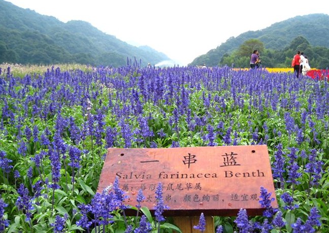這里沒有窒息的空氣,沒有呆板的布景,只有自由的山風吹動婚紗飄動,只有靈動的光影定格愛情的永恒?;ê!⒓t葉、青山、碧湖、竹林、溪流、棧道、幽谷,每一處景點都可成為最美的拍攝背景。在7月,最讓新人流連的是“天池花海”的美景。