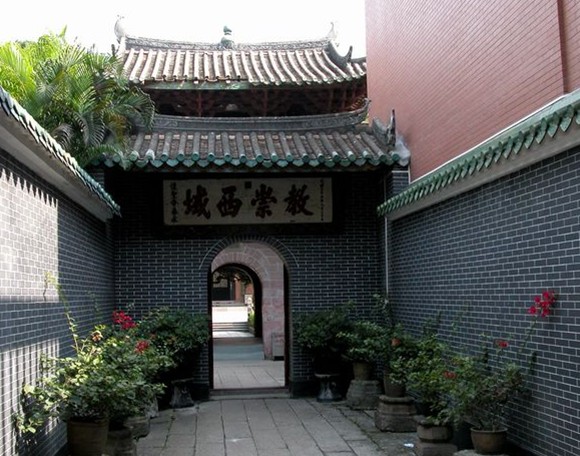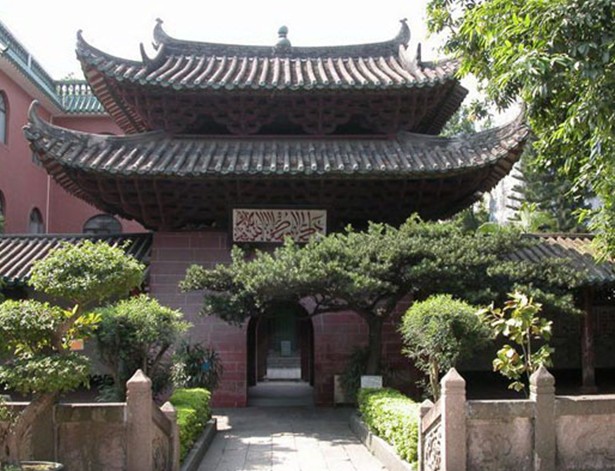 懷圣寺又名獅子寺,俗稱(chēng)光塔寺,是中國(guó)四大古代清真寺之一,也是我國(guó)現(xiàn)存最古老的清真寺建筑。位于越秀區(qū)光塔路56號(hào),被列為廣東省省級(jí)重點(diǎn)文物保護(hù)單位。唐、來(lái)以來(lái),廣州為我國(guó)海外貿(mào)易的主要港口,那時(shí)廣州的阿拉伯富商最多,他們?cè)诋?dāng)?shù)卣闹С窒?,修建了一座?guī)德宏大的清真寺,即今日的懷圣寺,寺的命名表達(dá)了中外教民對(duì)圣人穆罕默德的尊從和懷念。該寺禮拜大殿置于院庭的正面,它是3間帶周?chē)?、歇山重檐綠琉璃,帶斗拱的古典式建筑,巍然聳立在帶雕石欄桿的大平臺(tái)上,充分顯示了大殿的高貴威嚴(yán)、石欄桿板上的雕刻各異,有葫蘆、扇子、傘蓋、花卉、獅子、游魚(yú)等物,極為活潑生動(dòng)。大殿內(nèi)部潔白明亮,用木地板及三面拉門(mén),殿內(nèi)裝飾雖少,但很整潔大方。