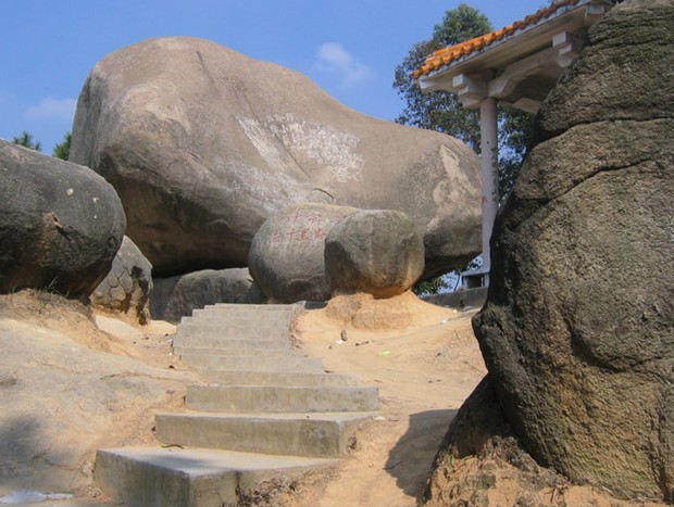 豬頭石高約5米,長6米,100余噸重,由兩小巨石頂住,仿佛凌空飛來,擱在石棱倒插的火爐山云峰山石之巔,版權(quán)所有山東聊城聊之旅國際旅行社有限公司,轉(zhuǎn)載必究!科學解釋為第四紀冰川過處的遺留物。