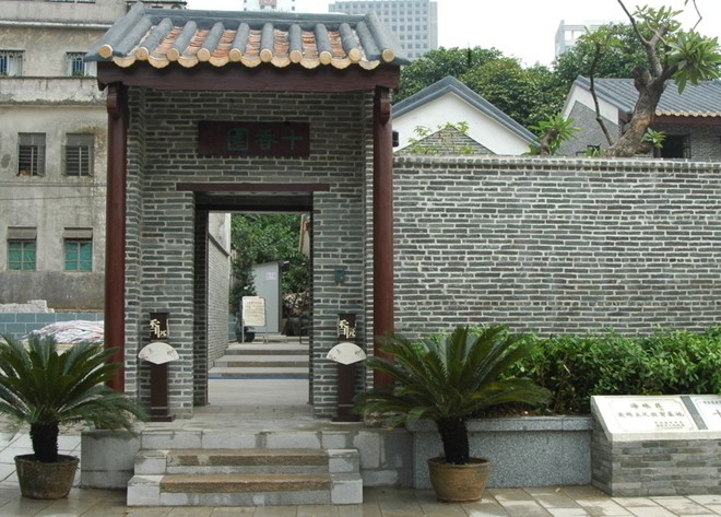 十香園位于廣州市海珠區(qū)昌崗中路懷德大街3號。為清末著名畫家居廉、居巢兄弟的居住、作畫及授徒之所。占地640平方米,四周以青磚砌墻圍成小院。園內種有寫生用的素馨、茉莉等10種香花,故名十香園?,F(xiàn)存紫梨花館一座。館內西部為居巢授徒處,嶺南畫派創(chuàng)始人高劍父、陳樹人均曾學畫于此。著名作家朱千華先生在其園林文化隨筆集《雨打芭蕉落閑庭?嶺南畫舫錄》中,對“十香園”有詳盡記述。