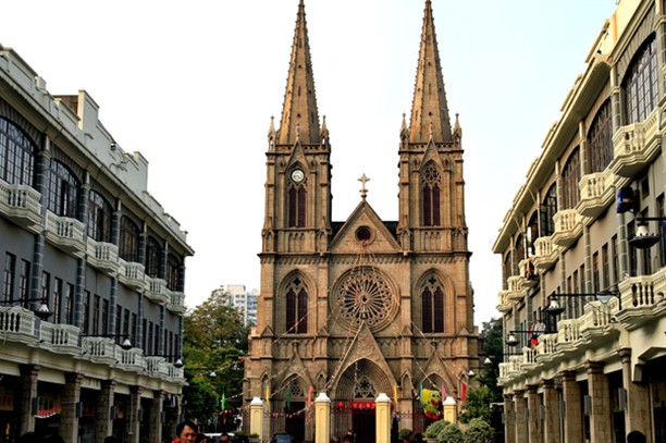 廣州石室圣心大教堂坐落于廣州市區(qū)中心的一德路,是天主教廣州教區(qū)最宏偉、最具有特色的一間大教堂。該教堂建于1863年,落成于1888年,歷時25年始建成,至今有130多年的歷史。由于教堂的全部墻壁和柱子都是用花崗巖石砌造,所以又稱之為"石室"或"石室耶穌圣心堂"、"石室天主教堂"。是省重點文物保護單位。