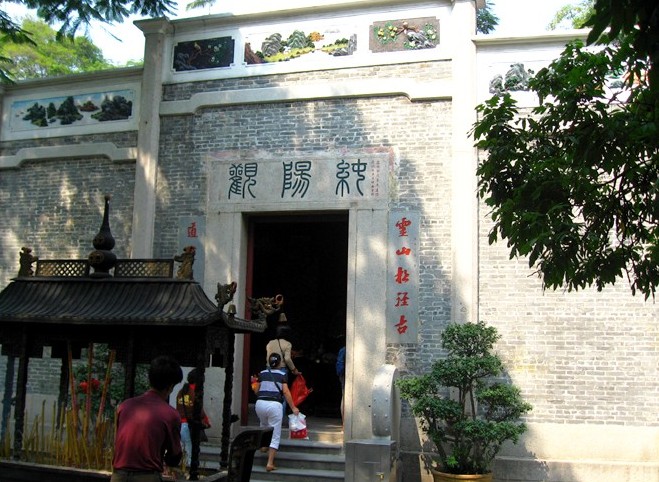 著名名勝古跡。位于珠江南岸新港路五鳳村(宋時稱萬松崗)。清道光年間道士李名徹(道號青來)見此崗“山環(huán)水曲,松石清奇”,遂取名漱珠崗.崗上有李氏募建的純陽觀,成于道光六年(1826),以觀中供奉純陽真君得名。觀傍山構(gòu)筑,布局謹嚴,簡樸古雅。觀后有朝斗臺,用花崗石砌筑而成,乃李名徹晚年為觀測天象而筑,是廣州地區(qū)僅存的古代觀象臺。近代漱珠崗曾是文土詩酒結(jié)社之所。版權(quán)所有山東聊城聊之旅國際旅行社有限公司,轉(zhuǎn)載必究!留有“梅社”兩字石刻.純陽觀的左前方原有阮元主建的楊孚祠,今已不存。