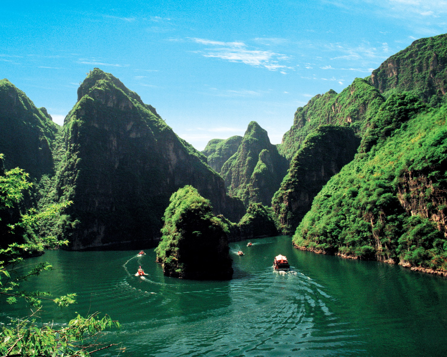 這座小山峰它三面環(huán)水,一面依山,以半島的形式展現(xiàn)在我們眼前,正因?yàn)樗晨咳悍?,?gòu)圖極為灑脫,所以被稱為“龍慶峽的標(biāo)志”。 版權(quán)所有聊城聊之旅旅行社有限公司,轉(zhuǎn)載必究!鳳冠島水面的寬度是50米,水深大約35米,您登船的碼頭大壩的位置是最深處,水深達(dá)到60米。
