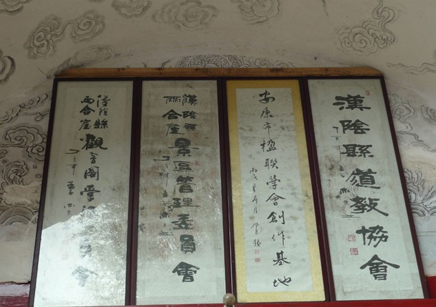 循山而上,廟依山崖,飛檐層疊。沿樵夫小徑通往山腰,只見(jiàn)一片翠綠,嬌艷欲滴,環(huán)抱遍野山菊,相應(yīng)成輝,妙趣天成。坐“陶然亭”小憩,細(xì)細(xì)體味著隱士陶淵明“采菊東籬下,悠然見(jiàn)南山”的怡然自得。亭壁“六龍馭穹蒼,文星射斗牛”的楹聯(lián),激揚(yáng)文字,豪情沖天,彰顯藏龍臥虎的磅礴氣勢(shì)。