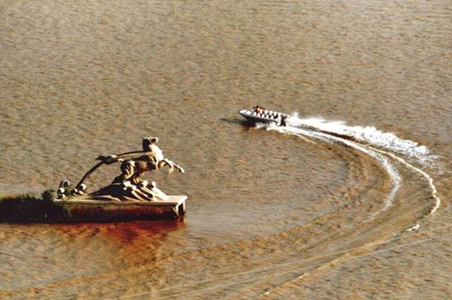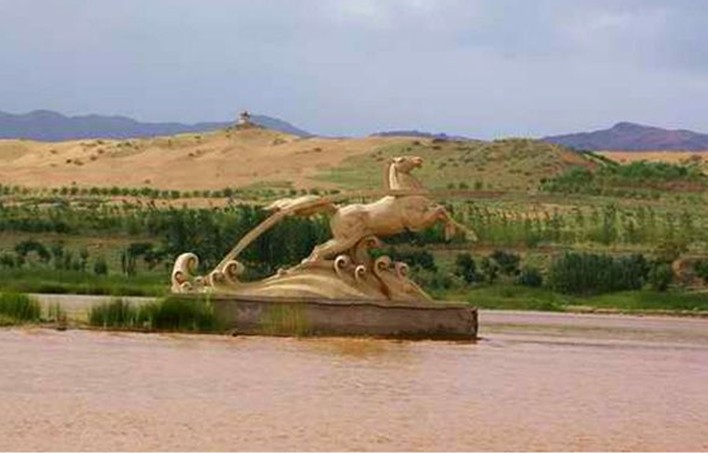 中衛(wèi)市城區(qū)有一條最古老的引水渠叫“美利渠”,它的引水原理是在河心筑堤引水,因此被稱為寧夏的“都江堰”。河水撞擊在10里引水長堤上,但見浪花飛濺,恰似白云翻飛,遠遠望去,宛如一匹白馬拖著長長的韁繩馳騁在黃河之中,這便是中衛(wèi)古八景之一的“白馬拉韁”。