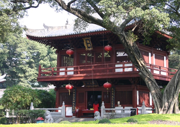 光孝寺的建筑規(guī)模雄偉,版權(quán)所有山東聊城聊之旅國際旅行社有限公司,轉(zhuǎn)載必究!為嶺南叢林之冠。它不僅在佛教歷史上占有重要的位置,并且開創(chuàng)了華南建筑史上獨(dú)有的風(fēng)格和流派。原有十一殿:大殿、毗盧殿、西方三圣殿、觀音殿、羅漢殿、六祖殿、伽藍(lán)殿、韋陀殿、天王殿、悉達(dá)太子殿、輪藏殿;六堂:戒堂、風(fēng)幡堂、客堂、禪堂、檀越堂、十賢堂;三樓:睡佛樓、鐘樓、鼓樓。由于歷史變遷,寺院幾遭破壞。1987年落實(shí)宗教政策,將光孝寺歸還佛教界,經(jīng)過十年的努力,寺院現(xiàn)已修葺一新,至今光孝寺有山門、天王殿、大雄寶殿、鐘鼓樓、伽藍(lán)殿、六祖殿、睡佛樓、洗缽泉、東西鐵塔、大悲幢、痙發(fā)塔等建筑與歷代碑記文物。