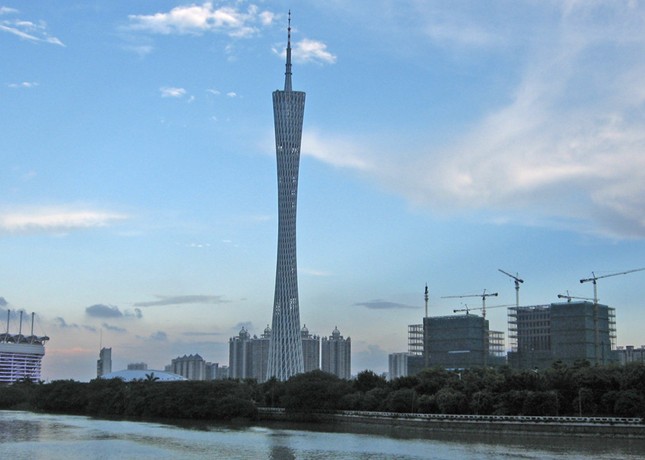 廣州塔(Canton Tower),建于廣州市海珠區(qū)雙塔路,距離珠江南岸125米,與海心沙島及珠江新城隔江相望。是一座以觀光旅游為主,具有廣播電視發(fā)射、文化娛樂和城市窗口功能的大型城市基礎(chǔ)設(shè)施,為2010年在廣州召開的第十六屆亞洲運(yùn)動(dòng)會(huì)提供轉(zhuǎn)播服務(wù)。該塔由廣州建筑和上海建工集團(tuán)負(fù)責(zé)施工,已于2009年9月竣工。廣州塔塔身主體450米(塔頂觀光平臺(tái)最高處454米),天線桅桿150米,總高度600米,取代加拿大的CN電視塔成為當(dāng)時(shí)世界第二高電視塔,次于美國北達(dá)科塔州KVLY電視塔(高度628.8米,1963年7月14日動(dòng)工,1963年8月13日竣工),世界第一高自立式電視塔,現(xiàn)僅次于日本東京天空樹塔的自立式電視塔(高度634米,2008年7月14日動(dòng)工,2012年2月29日竣工),為世界第二高自立式電視塔也成為廣州的新地標(biāo)。廣州塔已于2010年9月29日正式對(duì)外開放,10月1日起正式公開售票接待游客。