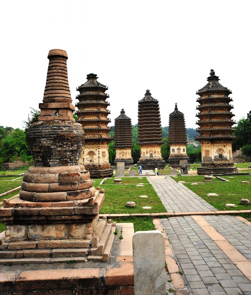 經(jīng)修繕,現(xiàn)景區(qū)內(nèi)可供參觀的古塔有18座。塔的形制、風格各異。其中,密檐式磚塔共計有7座。其整體形象分別由“須彌座”式的塔基,雕刻有門窗、佛像的塔身,層層密檐和塔剎等部分組成。外輪廓線條挺拔秀麗,磚雕精美細膩,是研究古代建筑美學及佛教文化的絕好資料。