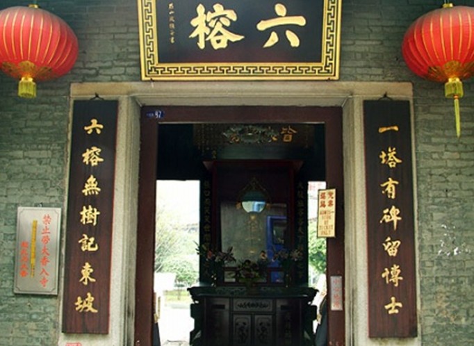 ◎公元1100年(北宋元符三年),大文豪蘇東坡由海南貶所北歸,路經(jīng)廣州到該寺游玩時(shí),應(yīng)寺僧道琮之請(qǐng)為寺題字,他見寺內(nèi)六株榕樹綠蔭如蓋,盤根錯(cuò)節(jié),氣勢(shì)不凡,即欣然書下“六榕”二字。