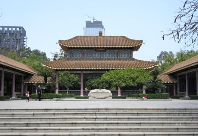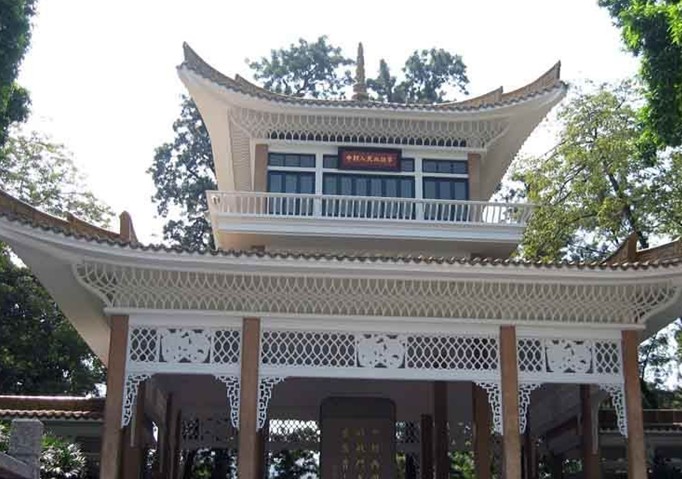 中朝人民血誼亭位于廣州起義烈士陵園內(nèi)東面,與中蘇人民血誼亭相對。建于1964年,坐南朝北。建筑平面呈“凹”字形,占地面積約3000平方米。黃色琉璃瓦,鋼筋混凝土結(jié)構(gòu)。主亭面闊三間12.85米,進深三間13.06米,高二層,四角攢尖頂。上懸“中朝人民血誼亭”匾額。兩側(cè)各有總長為33.7米的曲尺型長廊,兩廊各連接面闊6米,進深5.5米的卷棚歇山頂副亭,平面呈方形。中國傳統(tǒng)形式的建筑基座,帶有朝鮮民族風格的屋脊和檐口裝飾為金達萊花和木棉花結(jié)合的圖案。亭前是水池,小橋橫跨其中。亭中心矗立著高大的花崗巖石紀念碑,碑座高0.96米、碑身高 4.3米、闊2.6米,上嵌紅棉圖案。紀念碑正面刻“中朝兩國人民的戰(zhàn)斗友誼萬古長青”, 版權(quán)所有山東聊城聊之旅國際旅行社有限公司,轉(zhuǎn)載必究!落款為“葉劍英”,題于“1964年十月一日”。背面鐫刻著著名書法家吳子復書寫的碑文,對在廣州起義中犧牲的朝鮮青年的事跡作了簡明的介紹。