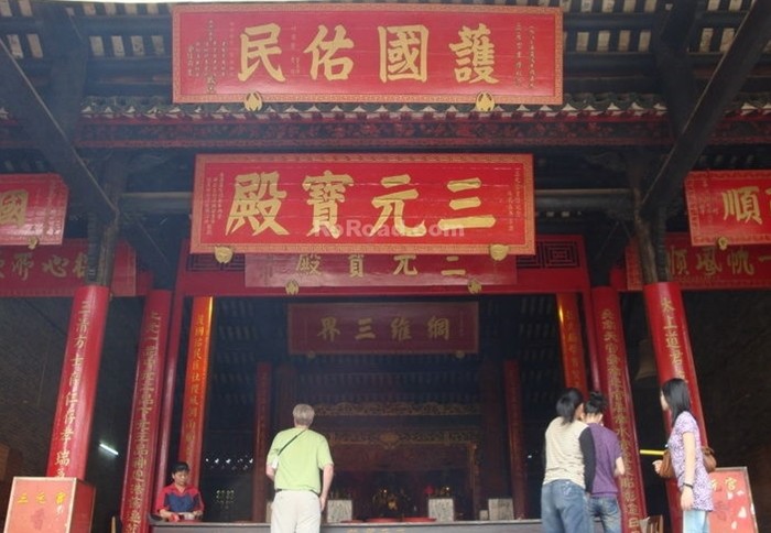 三元殿中以正月十五的上元誕最為熱鬧隆重。一早,來自四面八方的善信香客便蜂擁而來,聚集三元宮門前,希望能燒“頭柱香”,獲得天官保佑賜福。農(nóng)歷七月十五是中元誕,是赦免人間罪惡的日子。當(dāng)天又是人頭涌涌,來進(jìn)香禮拜者絡(luò)繹不絕。十月十五的下元誕是三元誕中最后一個誕日,是下元水官的誕辰。道教認(rèn)為這天是水官救難解厄運(yùn)的日子,同樣有許多善男信女們聚集到三元官來朝拜三元大帝。