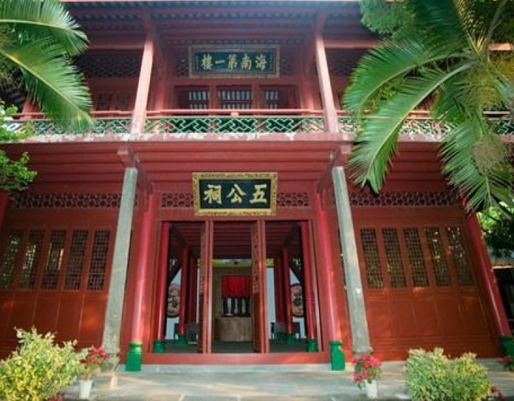 “五公”是指唐宋兩代被朝廷貶低來海南的五位歷史名臣,即唐朝宰相李德裕、宋朝宰相李綱、趙鼎及宋代大學(xué)士李光、胡全。他們?nèi)f里投荒,不易其志,為海南島的文化教育、經(jīng)濟(jì)的發(fā)展做出了不朽的貢獻(xiàn)。海南人民歷代建祠祭祀他們。清光緒十五年(1889年),雷瓊道道臺珠采修建海南第一樓紀(jì)念“五公”,故名五公祠,后來便以五公祠稱呼海南第一樓及其周圍一組古建筑。