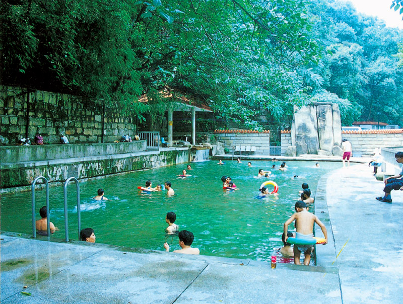 北溫泉的水溫一般為35℃-37℃,日流量達(dá)5675噸,屬弱堿性硫酸型礦泉,水中富含多種微量元素,不僅含鈣量高,水中還含有稀有的氡元素,對(duì)皮膚、關(guān)節(jié)、腸胃等部位疾病療病效果極佳。創(chuàng)建公園以后幾經(jīng)擴(kuò)建,目前已擁有室內(nèi)浴室75間,長(zhǎng)50米、寬16米的國(guó)家標(biāo)準(zhǔn)游泳池一個(gè)、現(xiàn)又新建了室內(nèi)游泳三角池和兒童嬉水池。此外,北溫泉附近存有唐宋以來的眾多題刻,還是中國(guó)游泳隊(duì)的訓(xùn)練基地之一。