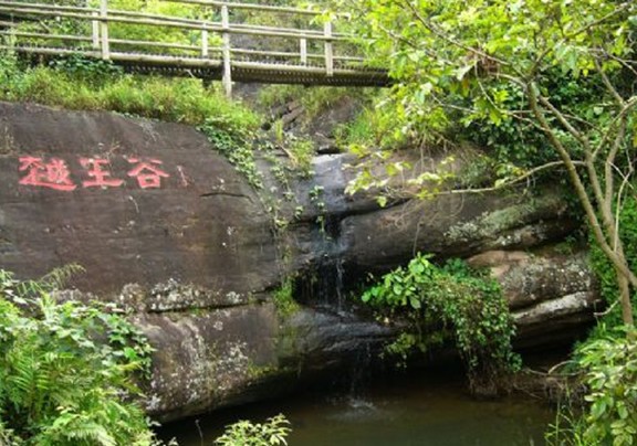海拔316米,四面絕壁從遠(yuǎn)處看,如一位大王在士兵的護(hù)衛(wèi)之下,雄偉壯觀;多處崖壁因巖凸和巖槽相間并輔之各種巖穴,形成神似越王頭像景觀。沿越王谷踩著木板棧道,穿行在一線天的狹縫之間,再攀援于峻峭陡壁之上,最后登上越王山頂,俯瞰周圍群山,“一覽眾山小”之豪邁情懷便油然而生。