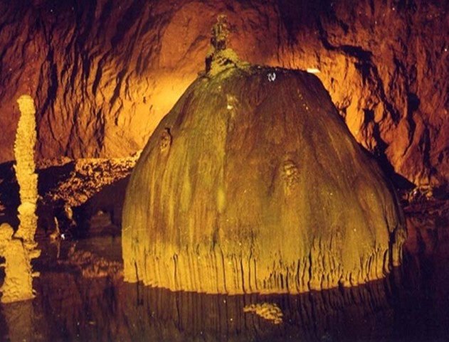 百魔洞位于巴馬縣甲篆鄉(xiāng),1987年,當中國和英國的巖溶地質專家踏進了百魔洞,進行了聯(lián)合考察后,一致認為:該洞集天下巖洞之美于一身。洞的平均高度為80米,寬70米,主游路程4000多米,盤陽河從百魔洞下流過。百魔洞的獨到之處還在于它的鐘乳石高大氣派;據測量,最高的石筍為39米、直徑為10米。景點設有:孔雀迎賓、良田萬頃、金山猴王、杜甫吟詩” 該洞加上洞上洞、洞內洞之歧路,游程可達萬米。與相通的感歲洞,鄰近的柳羊洞和五仁洞組成龐大的洞群。此洞分為4個大殿堂,輝煌瑰麗,多姿多彩,讓人看了留連忘返。其中最為壯觀的是那個100多米高,幾百米寬、1000多米長的大殿堂內,幾十個70~80米高、3~5米直徑的鐘乳石柱,構成龐大的石塔群,挺拔高聳,雄偉壯麗,讓人驚嘆不已。加上洞中霧氣繚繞,變幻無窮,更使這個巍巍景觀顯得詭秘多姿。這些巨大的鐘乳石塔,是經過幾億年巖溶發(fā)育的結晶,實屬“天下之最”。