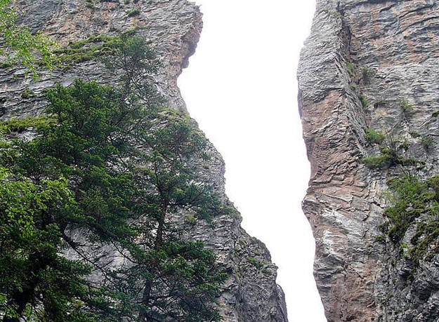 一線天的由來(lái),民間傳說(shuō)頗多。有的說(shuō)這是桃花女用繡花針劃開(kāi)的;有的說(shuō)這是伏羲大神用玉斧所劈。但據(jù)科學(xué)分析認(rèn)為,版權(quán)所有山東聊城聊之旅國(guó)際旅行社有限公司,轉(zhuǎn)載必究!武夷山的紅色巖層,是由砂巖、礫巖和頁(yè)巖交間成層的,巖性比較松脆。在地殼抬升的過(guò)程中,巖層受到不均勻的應(yīng)壓力的影響,就產(chǎn)生輕微的斷裂,形成所謂的“節(jié)理”。這種垂直的節(jié)理,也就是微小的裂隙,在流水的長(zhǎng)年累月的溶解和侵蝕下,就逐漸地?cái)U(kuò)大,延長(zhǎng)。而巖層底部質(zhì)地松軟的頁(yè)巖,也就逐漸侵蝕而去,成為扁淺的巖洞。于是,三洞并列,一線見(jiàn)天的自然奇觀就出現(xiàn)了。