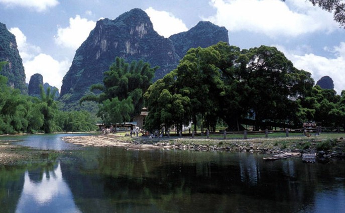 大榕樹位于陽朔縣城南7.5公里。樹高17米,樹圍7.05米,遠(yuǎn)望似一綠色巨傘撐立地上。隔河有穿巖,組成穿巖古榕景點。陽朔大榕樹景區(qū)是世界巖溶喀斯特地貌峰林峰叢最集中、最典型、最有代表性的地方,以奇特的巖溶喀斯特地貌、如詩如畫般的山水田園風(fēng)光和豐富的壯族少數(shù)民族民俗文化聞名天下。詩情畫意韻律優(yōu)美的稻田,清澈見底的小河,青翠濕潤的山峰,鳳尾竹,壯家村寨,水車,清新爽人的空氣,標(biāo)示著這里人與自然的完美和諧,更似一幅藝術(shù)水平極高的中國水墨山水畫長卷。曾被美國哈佛大學(xué)博士、世界著名園林專家卡爾稱為:在中國看到了最美麗的地方。風(fēng)靡中國及東南亞地區(qū)的電影《劉三姐》很多鏡頭在此拍攝,影片中劉三姐與阿牛哥大榕樹下拋繡球定終身的情景打動了天下有情人。