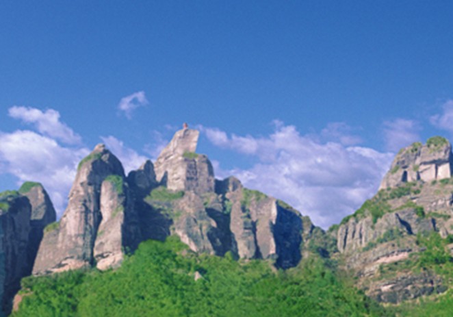 山里三組峰巒組成一個體,傍無延緣,氣勢磅礴,奇峰突起,峭石崢嶸,百態(tài)千姿,景色秀麗。