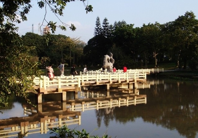 孤山北面有一九曲橋,直通西湖平湖中的點翠洲,洲上有孤嶼亭,明代建為點翠亭。亭西有枇杷洲,另有二橋可通孤山與芳華洲。辟有“花港觀魚”景點。 九曲橋是人文紀念公園三十六景之一,在匯通月潭的上方。九曲橋,顧名思義,是指橋共分成九曲,曲折迂回。“九”是數(shù)字中最大的單數(shù),古有“九九歸一”和“九五之尊”之說,均是對“九”這個充滿吉祥、尊貴的吉數(shù)集中的概括。橋全長18米,寬2米。一、九曲橋是匯通景園三十六景之一。九曲橋,顧名思義,版權(quán)所有山東聊城聊之旅國際旅行社有限公司,轉(zhuǎn)載必究!是指橋共分成九曲,曲折迂回。“九”是數(shù)字中最大的單數(shù),古有“九九歸一”和“九五之尊”之說,均是對“九”這個充滿吉祥、尊貴的吉數(shù)集中的概括。橋全長18米,寬2米。全橋由花崗巖和草白玉構(gòu)成,橋下為放生池,橋的兩旁有廊亭,廊亭的兩旁有石桌石凳,在這里或品茶弈棋,或瀏覽風光,讓你感受到世外的悠閑和寧靜。橋體雕刻精美,構(gòu)思巧妙,匠心獨運,巧奪天工。穩(wěn)固堅轉(zhuǎn),寄雄奇于絕倫之里,寓雋秀于精巧之間,每逢晴天,澄清空明,橋倚碧水,曲橋如玉帶浮水、橋水空蒙、水橋一色、波光瀲滟,水波魚動微風起,一池荷蕊滿園香。池內(nèi)蓮花吐珠、荷葉田田,風月無邊。水波粼粼的池塘在熠熠生光。耀金閃銀的潭水簇涌著,在水面上連成一串線條挺拔的幾何形圖案,風起時,偶爾濺起一些水花,給九曲橋圖案鑲個邊。這橋給人以飄逸,舒暢之感。