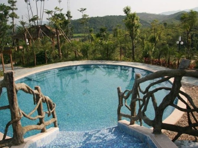 山莊有客房75間,可以同時接待180人旅游渡假或商務(wù)會議。配套設(shè)施有大型游泳池,大小溫泉池、籃球、羽毛球、乒乓球、臺球、棋牌、茶座、會議廳、舞廳、卡拉OK房等[1]。