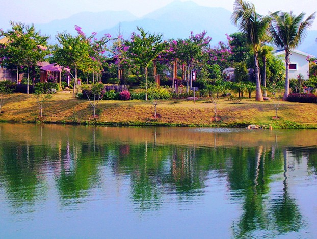 度假區(qū)內(nèi)別墅客房設(shè)計及設(shè)施都是按五星級標(biāo)準(zhǔn)籌建,以嶺南的藝術(shù)建筑及高檔的中西結(jié)合型度假別墅更具獨特風(fēng)格。目前設(shè)有1000多個床位,小島別墅山莊、溪邊別墅山莊以及山中別墅高雅舒適、寬敞明亮,其中小島別墅四面環(huán)水、風(fēng)景優(yōu)美,到處都充滿了詩情畫意的景象!
