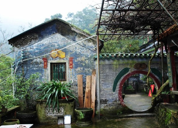 觀音巖:巖在山腰,有兩巨石壁立,一石橫覆其上,為屋形,石壁上刻有天然石屋四字,因巖中置觀音像,故亦名觀音巖,石屋旁有禾雀花藤盤石而攀,清明時節(jié),雀花盛開,為石室增添美景。