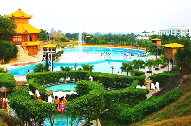 富都溫泉水富含納、鋰、偏硅酸等多種具有醫(yī)療價值的礦物元素,浴后皮膚爽滑,對肥胖癥、風(fēng)濕病、各類皮膚病均有良好療效。溫泉區(qū)設(shè)有大小溫泉池100多個,其中有:水療按摩池、花池、藥療池、礦物療養(yǎng)池、酒池、冰池、山水游泳池、熱炕床、音樂溫泉噴泉的士高、水上樂園 。