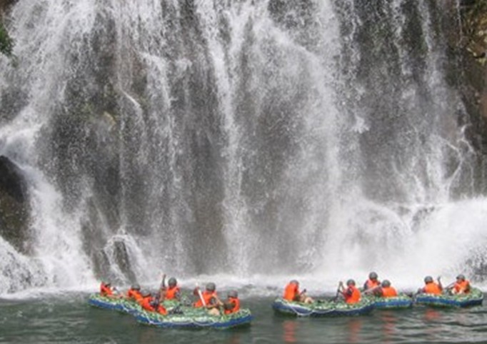 戰(zhàn)船隨著洶涌的河水奔騰而下,峽谷兩側(cè)炮聲隆隆,槍聲不斷,烽煙滾滾,還不時有敵人憑著叢林和怪石作掩護向我小分隊襲擊。當然了,我們勇敢的戰(zhàn)士也毫不猶豫地用手中槍(水槍)予以還擊。在不斷的突破、穿越敵陣的緊張征程中,有著革命樂觀主義精神的戰(zhàn)士們不忘享受穿越激流險灘時的激情澎湃和領略漂浮于平緩流水時兩岸風光盡收眼底的詩情畫意。順流而下,四周山巒起伏,奇峰異石;峽谷峭巖跌宕,鬼斧神工;河道石貌多姿,溪水清澈;兩岸林茂竹翠,花香鳥語;沿途飛瀑奇巖,清溪幽泉,組成一幅美妙的大自然圖畫,恍如置身桃花源中,步入人間仙境。版權(quán)所有山東聊城聊之旅國際旅行社有限公司,轉(zhuǎn)載必究!經(jīng)過一個多小時的戰(zhàn)火征程,3.3公里的航程,戰(zhàn)友們感受了大地的歡歌、生命的激情,終于完成了任務(到了總部終點)。