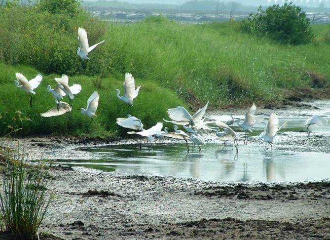新會(huì)銀湖灣阡陌縱橫,水網(wǎng)交織,藍(lán)天與綠洲互相輝映,融江、海、湖、田、山、水于一身,有著其他地方無(wú)可比擬的生態(tài)旅游特色。放眼望去,在綠油油的田野中、圍堤上,傲立著幾棵高大的木棉,紅艷艷的木棉花與周?chē)木G樹(shù)交織成一幅紅綠般配的鄉(xiāng)土美景。果園里彌漫著陣陣濃郁的芳香,那濃香撲鼻的,便是陽(yáng)山桔的花;房前屋后的桔樹(shù),開(kāi)滿了桔花,遠(yuǎn)遠(yuǎn)望去,樹(shù)冠上仿佛堆了一層厚厚的白雪,到處是桔花的清香。