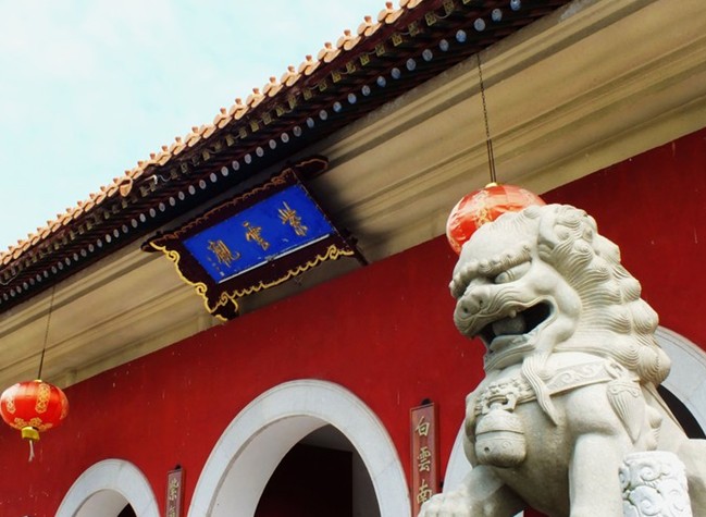 遠(yuǎn)望這座仿古建筑群,流光溢彩,氣勢非凡。門前有6000多平方米的停車場,室外的地面砌花崗巖石,綠樹紅花點(diǎn)綴其間。版權(quán)所有山東聊城聊之旅國際旅行社有限公司,轉(zhuǎn)載必究!進(jìn)入山門后,兩邊分別是鐘樓和鼓樓,中間有一座漢白玉石雕砌的會(huì)仙橋。各建筑物的梁柱和走廊間繪制了許多花鳥、山水、人物圖畫,體現(xiàn)了濃厚的文化品味。宮觀內(nèi)各殿堂安坐的神像有靈官護(hù)法、玉皇大帝、三清道祖、呂洞賓仙師、黃大仙、斗姆、六十太歲、關(guān)圣帝君、北帝、李涵虛祖師、觀音大士、天后、龍母等九十多尊。神像雕塑,道骨清相,神態(tài)逼真,形象慈祥、威嚴(yán)、端莊。