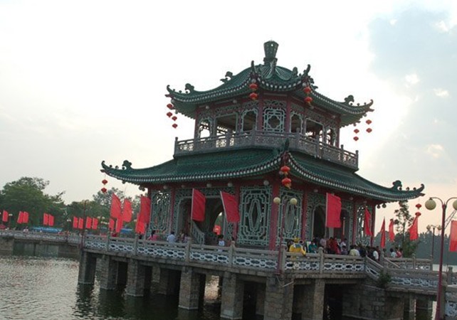 建于1958年,在榕城西南,傍依榕江南河,園內(nèi)西湖岸柳垂蔭,碧波蕩漾。湖中有兩層湖心亭,九曲橋由亭向左右伸展,如龍臥波,橋下游艇穿梭,錦鱗來(lái)去,令人神怡。依欄遠(yuǎn)眺,一湖景致盡收眼底。橋頭的“雙象戲水”大型雕塑,高6.6米,大象長(zhǎng)鼻高揚(yáng),仰天噴水,小象則天真嬉戲,版權(quán)所有山東聊城聊之旅國(guó)際旅行社有限公司,轉(zhuǎn)載必究!依偎在旁。園中并有少年宮、游泳池、兒童樂(lè)園等,并辟有百花圃,群卉競(jìng)放,姹紫嫣紅。