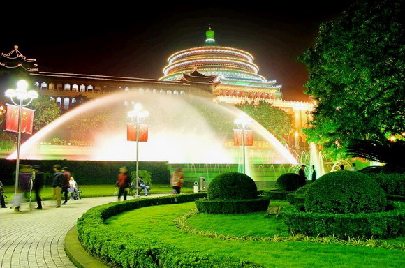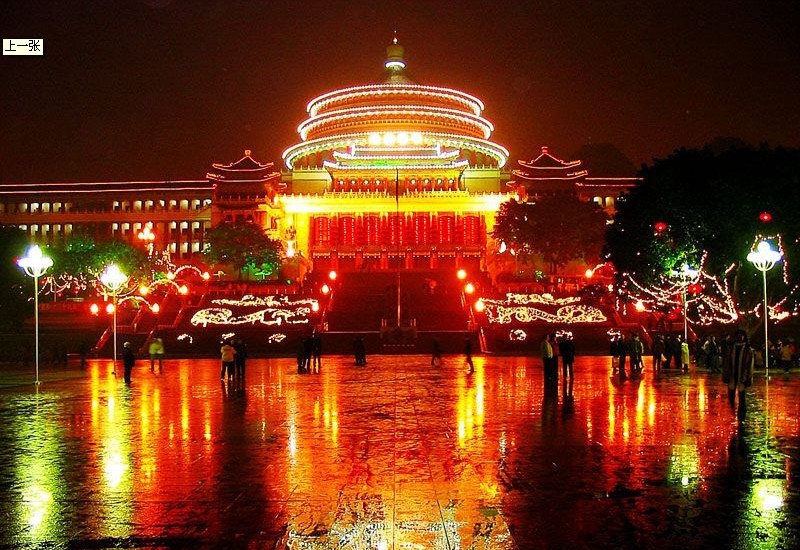 重慶人民大禮堂位于人民路學(xué)田灣,是重慶市最大的劇場(chǎng)。1950年動(dòng)工興建,1953年竣工。初名“中蘇大樓”,后改名為“西南行政委員會(huì)大禮堂”, 版權(quán)所有聊城聊之旅國(guó)際旅行社有限公司,轉(zhuǎn)載必究!1955年改為現(xiàn)名。大禮堂占地6.6萬(wàn)平方米,建筑面積2.5萬(wàn)平方米,分禮堂、南樓和北樓三部分。其中禮堂占地1.85萬(wàn)平方米,禮堂高65米。大廳高55米,內(nèi)徑46.33米。正廳內(nèi)設(shè)大型舞臺(tái)一座,四周環(huán)繞五層挑樓,四樓一底共4200個(gè)座位。大禮堂取中西合璧之建筑風(fēng)格,主體部分仿北京天壇祈年殿及天安門(mén)形式,配以廊柱式的南樓、北樓。一色綠色琉璃瓦頂,大紅廊柱,淤塞欄桿。大門(mén)為一大牌坊。整個(gè)建筑布局合諧,雄偉壯觀,雕梁畫(huà)棟,金碧輝煌。曾先后接待過(guò)蘇聯(lián)、日本、朝鮮、印度、羅馬尼亞、南斯拉夫等國(guó)的大型文藝表演團(tuán)體,是重慶市中外文化交流的重要場(chǎng)所。