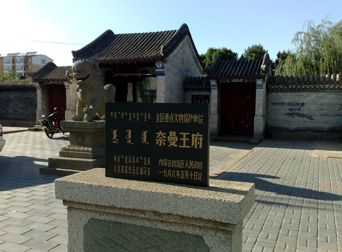 奈曼王府坐落于內(nèi)蒙古自治區(qū)通遼市,始建于清同治二年(公元1863年),為全國(guó)重點(diǎn)文物保護(hù)單位。占地面積9997平方米,有房屋190余間,系臺(tái)榭回廊式四合建筑。原為奈曼部首領(lǐng)札薩克多羅達(dá)爾漢郡王的府邸,現(xiàn)已對(duì)公眾開(kāi)放.