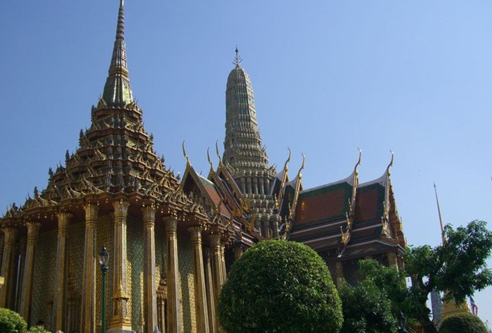 把九世皇廟叫“國王廟”。 九世皇廟內(nèi)供奉著歷代高僧的舍利子和他們的蠟像舘。這兩處景點(diǎn)和“七珍佛山”被稱為泰國三大奇觀,參觀時不能拍照,需脫鞋而入。九世皇廟內(nèi)綠化極好是一處精致的皇家園林。因室內(nèi)不許拍照、拍攝的只是九世皇廟中建筑的外觀。
