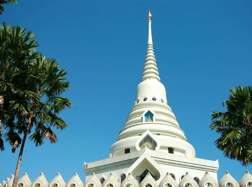 泰國人都叫它“國王廟”。泰國是佛教國家,走進(jìn)泰國每一座寺廟,都可以看到刺眼的金光。彷佛泰國人把所有的黃金都慧贈給他們所虔誠膜拜的佛祖,以至于讓你懷疑泰國是不是已經(jīng)躍然成為發(fā)達(dá)國家或者黃金已經(jīng)不再是稀有金屬。九世皇廟的建筑款式與其它廟宇不同,樸素精巧,沒有其它寺廟的金碧輝煌和規(guī)模宏大,一切遵照國王諭示,以節(jié)簡和樸素為原則,蓋成了佛殿、方丈樓、僧舍、綜合樓、水池、廚房和其他必需用房子,每座建筑都是白色的,表示純潔、漂亮.泰國的九世皇廟位于芭堤雅,是專為當(dāng)今國王建造的未來行宮。泰國民眾 圣潔的舍利子塔。