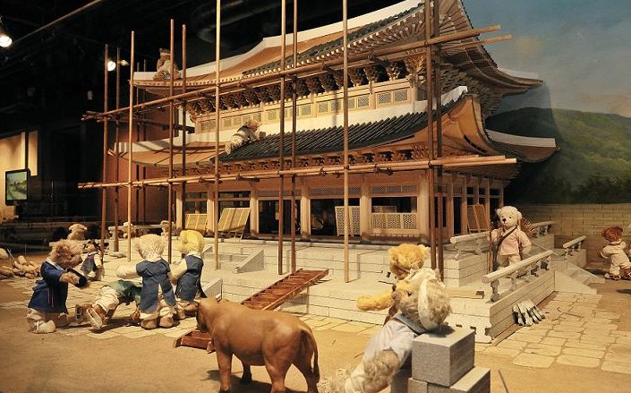 大家都知道南山塔是首爾的代表性建筑,是首爾的至高點。泰迪熊博物館正位于能一眼望盡首爾美麗風景的南山首爾塔內。 博物館分為兩個館。歷史館和現代館。歷史館—朝鮮時代的首都漢陽到現在的首爾;現代館—狎鷗亭到三清洞的首爾現貌。門票8000韓元/成人。從古至今,我們先去1館-歷史館看看朝鮮時代的泰迪熊們是怎么生活的吧!