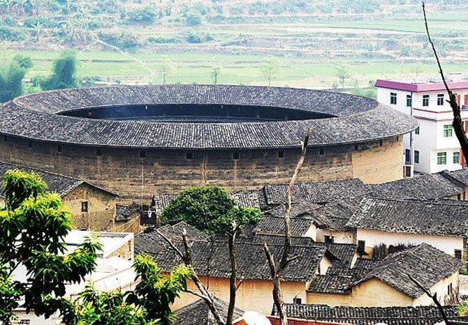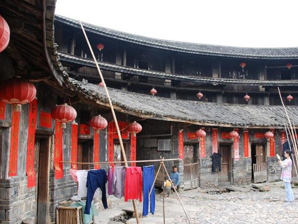 花萼樓占地面積2300平方米,建筑面積2286平方米,屬土木結(jié)構(gòu)的圓形建筑。共有三環(huán),內(nèi)環(huán)為一層30個(gè)房間,二環(huán)為二層60間,外環(huán)為三層120間,共有210個(gè)房間。樓高11.9米,樓的墻體用生土夯筑而成,底層寬2米。頂層寬1.3米,樓頂為木梁灰瓦。樓的第一層不設(shè)窗,第二、三層墻上設(shè)有內(nèi)小外大呈三角的槍眼,整座樓只有一個(gè)大門(mén)供出入,大門(mén)框用厚而寬的花崗巖石板組成,版權(quán)所有山東聊城聊之旅國(guó)際旅行社有限公司,轉(zhuǎn)載必究!大門(mén)板釘上堅(jiān)厚的鐵皮,這些門(mén)窗設(shè)施是為抵御外人侵?jǐn)_而特意設(shè)計(jì)的。樓內(nèi)有面積為283.4平方米的圓形天井,用大小不等的鵝卵石鋪成,中心裝飾著一個(gè)直徑3米的古錢幣圖案,寓意著人們祈求豐衣足食的心愿。天井一側(cè)有口古井,用于防火和生活之用。樓內(nèi)還有礱、碓等常用生活設(shè)施。整個(gè)土樓布局合理、通風(fēng)采光、冬暖夏涼,現(xiàn)樓內(nèi)還住著十多戶林姓人家。