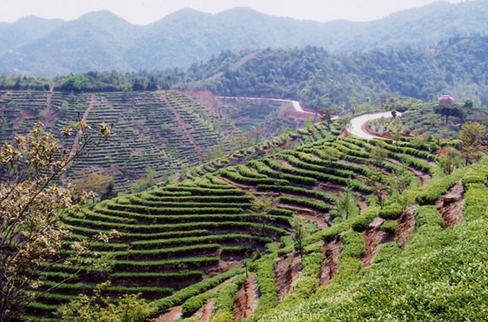 西巖茶鄉(xiāng)以她的秀美、蒼翠和茶田的鮮明層次感,讓你浮想聯(lián)翩,詩興大發(fā),心曠神怡。綠色的茶田連著青山,延綿數(shù)十公里,天上白云在藍天下顯得更加明媚多嬌。清晨,高山繞著云霧,霧在山中,人在霧中,人間仙境恐怕只有身臨西巖茶鄉(xiāng)才能真正領(lǐng)略。