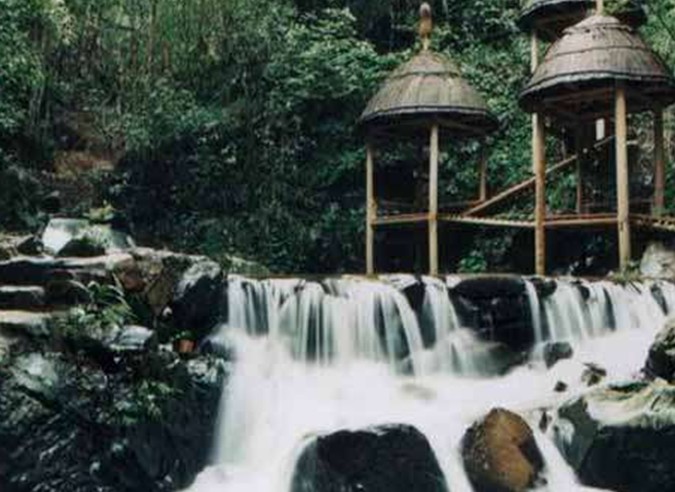 大旭山飛瀑群景區(qū),山高林深、溪水清冽、地勢起伏、瀑布成群,空氣特別清新。本著追求“自然”的宗旨,上山路徑和供游人觀瀑的亭榭都與周圍環(huán)境相協(xié)調(diào),亭榭都用樹皮、竹木構建,看似簡單,卻別有韻致。