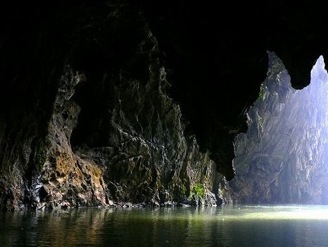 “洞天仙境”是一頗具特色的景點(diǎn),一路上,平坦的公路,兩邊是平坦的田園。規(guī)劃整齊的水田里,禾苗綠意盎然,顏色由深至淺鋪向遠(yuǎn)方,一座奇特的大山就在眼前,通過(guò)寫有“洞天仙境”的大門樓就進(jìn)入到了停車場(chǎng),再行數(shù)十步,有一明鏡般的小湖映入眼簾清漸見(jiàn)底的湖水可見(jiàn)魚在游動(dòng),湖兩邊停放著幾只小船。洞口有一巨大的鐘乳石向下垂吊,山洞口就像龍口,垂吊的鐘乳石就是一條龍利,從藤修蔓垂的巖洞口蕩槳而入,木槳擊破水面的輕微聲響驚出數(shù)十只燕子,版權(quán)所有山東聊城聊之旅國(guó)際旅行社有限公司,轉(zhuǎn)載必究!在眾多奇姿怪態(tài)的鐘乳間穿掠,越發(fā)顯出洞穴的幽奇。穿過(guò)一段狹窄的地方進(jìn)入到洞內(nèi),視野豁然開(kāi)朗,一個(gè)巨大的山洞有樹(shù)木,綠草、野花,抬頭仰望,又有一個(gè)天,這不是夢(mèng)吧!洞中有天,洞天相連,洞中的天一長(zhǎng)一短,酷似一個(gè)巨型的感嘆號(hào),讓人嘆為觀止,細(xì)心觀察那個(gè)長(zhǎng)的還真似臺(tái)灣島的地理版圖,真是讓人驚嘆自然造物的神奇。