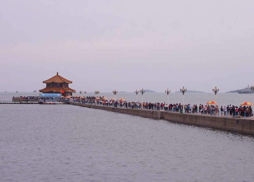 棧橋初建于光緒十八年,俗稱前海棧橋、南海棧橋、大碼頭。位于青島市市南區(qū)海濱,青島灣北側(cè),與小青島隔水相望,北端與中山路成一直線相連,被視為青島市重要標(biāo)志。