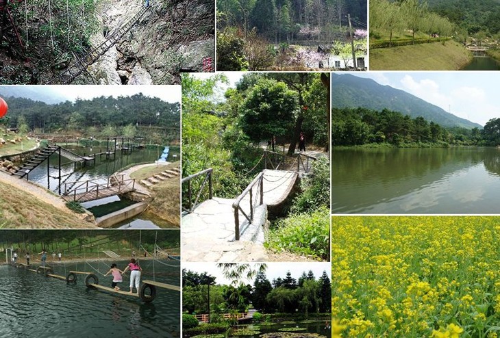 沿溪有三大瀑布群,最高的雙孖瀑布達(dá)一百多米,大小清澈的潭水一個(gè)接著一個(gè),就像掛在山體的珍珠。其中“玉龍?zhí)?rdquo;最為著名,因?yàn)樵谔犊诰薮蟮氖谥酗@現(xiàn)出一條寬約20多公分、長(zhǎng)約數(shù)丈的白玉石層,婉如一條玉龍飲水而得名。據(jù)專家推斷:有此自然現(xiàn)象的機(jī)率不到十萬(wàn)份之一,這也是世界一絕。除此之外,沿溪我們還可以欣賞到鮮見的人文和自然界的新鮮事。如中國(guó)大地上最古老的祭祈壇“伯公仔”、雨季不出水旱季出水的“神泉”。探險(xiǎn)項(xiàng)目有鐵索橋、探險(xiǎn)龍等。精彩美景四季各異,春天可觀賞滿溪的“禾雀花”,秋天可觀賞到不是香山勝似香山的滿山紅葉。