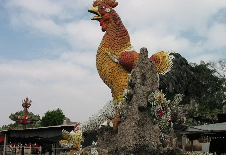 位于媽嶼島北面山麓的古廟是元代漁民從湄洲祖廟請(qǐng)來(lái)香火而創(chuàng)建的,后毀,1861年(清咸豐十一年)重建,1928年重修,是粵東沿海最早的媽宮之一。古廟有正殿,三開間,廟內(nèi)保存始建的二根梭型石柱。多少年來(lái),人們出海前都要上島祭拜,帶活雞放生,以至島上雞群滿山,故媽嶼島亦稱放雞山。現(xiàn)廟前有座雄雞雕塑,色彩斑斕,正是這段歷史的寫照。